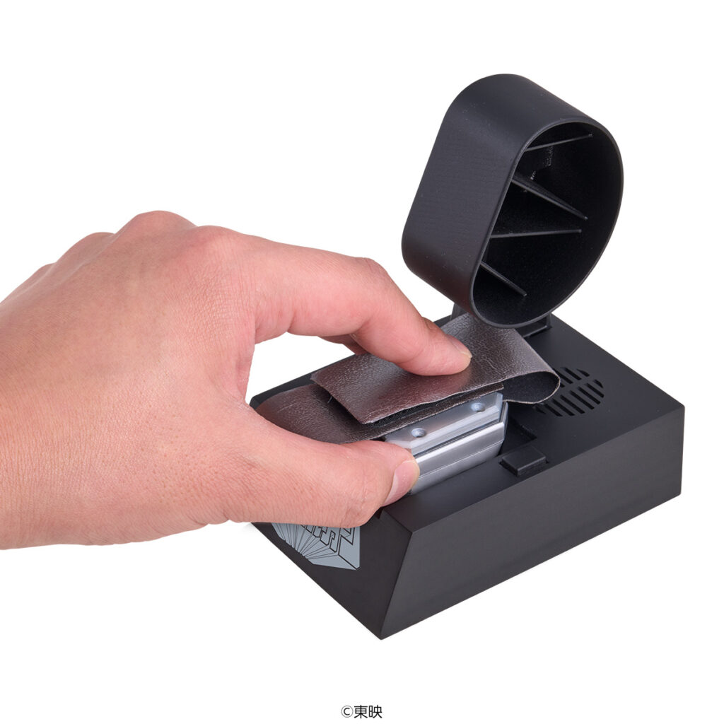 さらに専用台座にも音声ギミックを搭載しており、TVサイズの主題歌を含むBGM5曲が再生可能です。