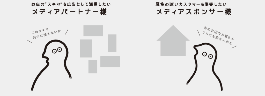 スキマッチは、店舗や施設のちょっとしたスキマを広告メディアに変えることで、企業には新たなリーチを、店舗・施設には収益化の機会を生み出すサービスです。